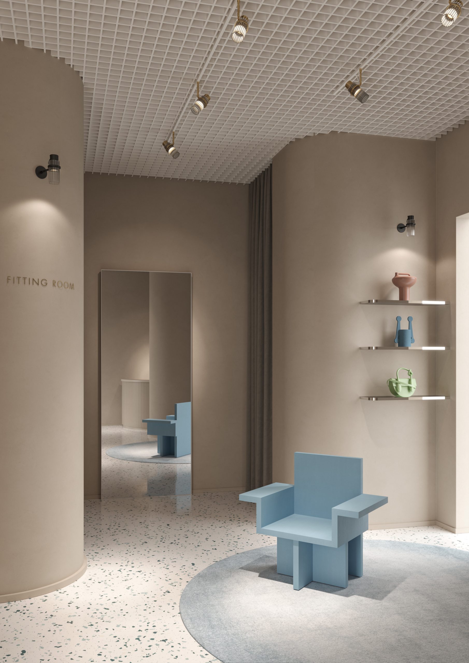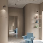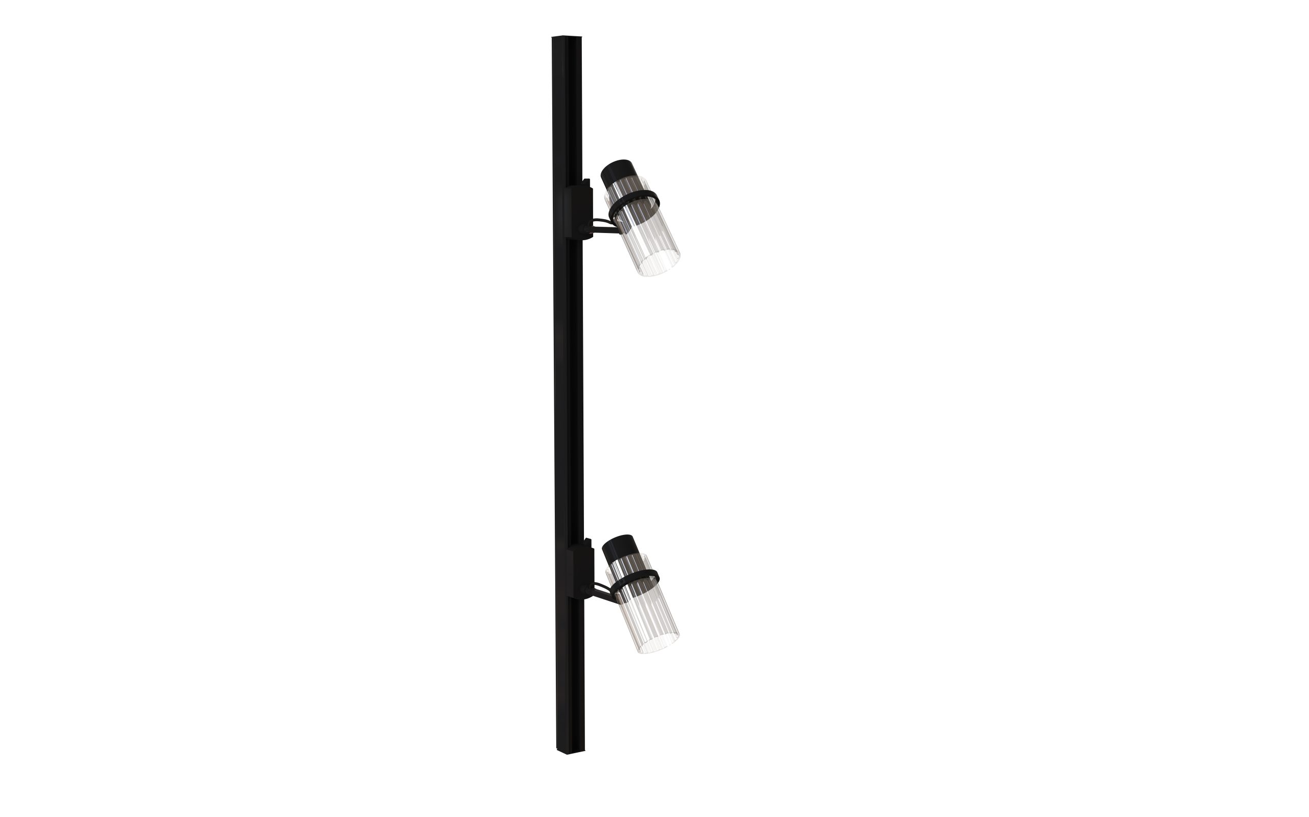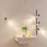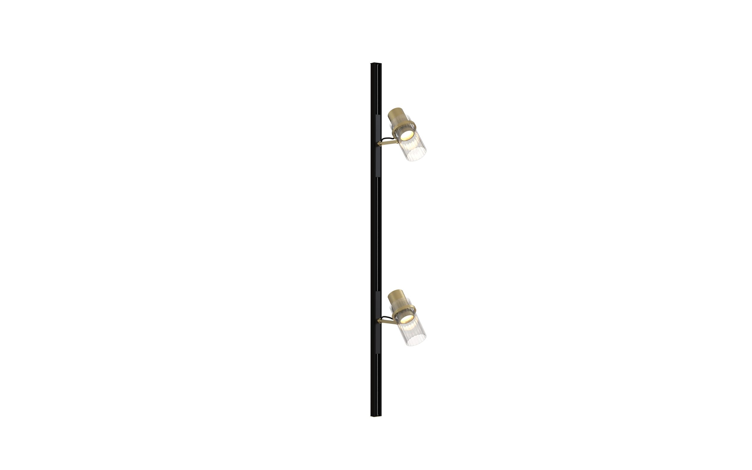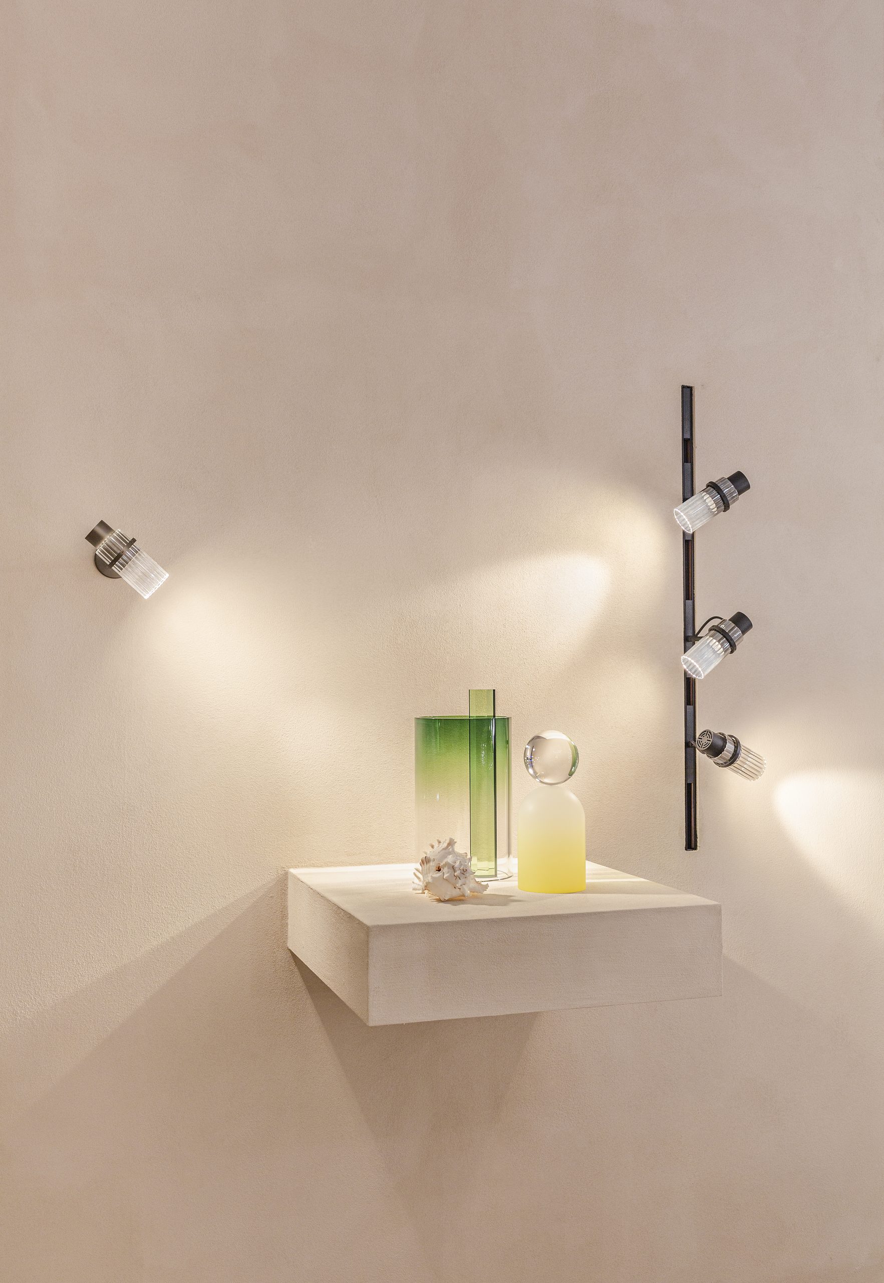 a system of technical spotlights with a crystalline and elegant aesthetic, based on curved elements that evoke the grace of the feminine universe, such as sartorial pleats and the sophisticated workmanship of precious perfume bottles. Available in matte black, brass, nickel and titanium finishes with clear